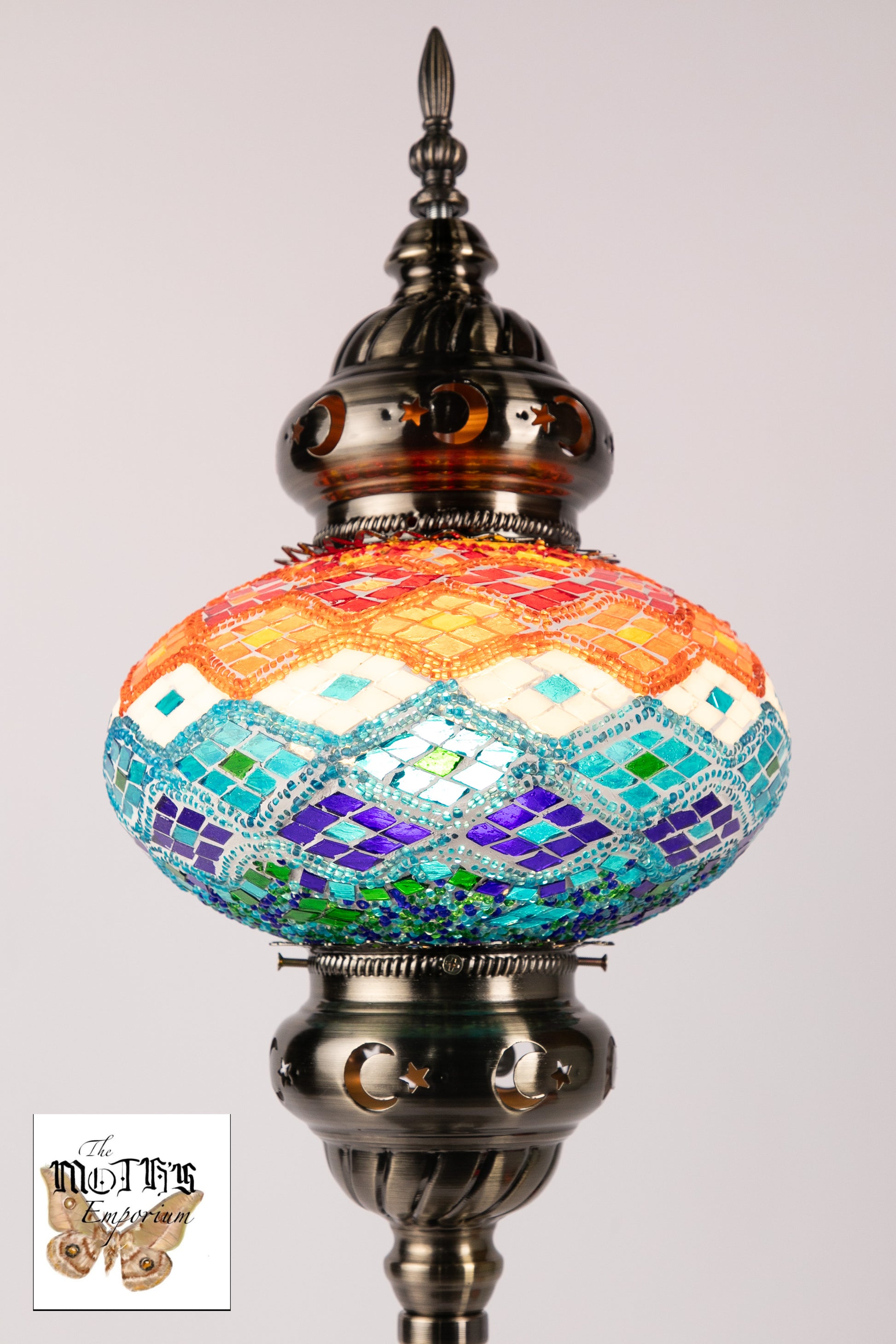 large Globe Moroccan Table Lamp (Orange/Blue Waves)